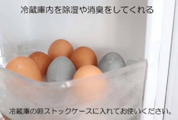 炭を混ぜた、タマゴ型調湿脱臭剤なんです!